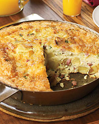 Preheat the broiler. Broil the frittata 8 inches from the heat for 1 minute, until the top is just beginning to brown. Cut the frittata into wedges and serve hot or at room temperature.