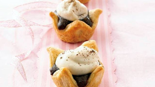 Unroll dough into 2 long rectangles; firmly press perforations to seal. Cut each rectangle in half lengthwise. Cut each half crosswise into 6 (2-inch) squares. Press or roll out each square to 2 3/4-inch square. Place 1 square in each of 24 ungreased mini muffin cups; firmly press in bottom and up side, leaving corners of dough extended over edge of each cup.
