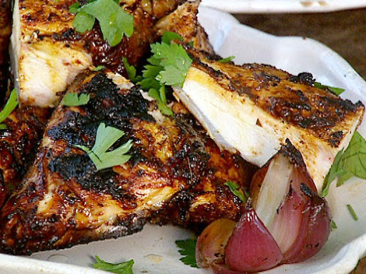 Rub your chosen meat all over with the marinade, really getting it into all the nooks and crannies and, in case of the lamb, the slashes. Place the meat in a snug-fitting roasting pan, top with any leftover marinade and cover loosely with aluminum foil. Bake the meat in the preheated oven until sweet and tender. This will take 1 1/2 hours for the pork ribs and the lamb (but if you like your lamb pink, it will only need 1 hour), and 1 hour and 20 minutes for the chicken.