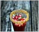 When ready to serve, garnish the shot glasses with raw sugar and top with pomegranate seeds.