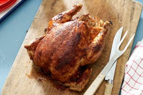 GRILL chicken 1 hour; brush with sauce. Grill 15 min. or until chicken is done (170ºF), brushing frequently with remaining sauce. Remove from barbecue; cover loosely with foil. Let stand 10 min. before removing chicken from can and carving chicken. Discard any beer remaining in can.