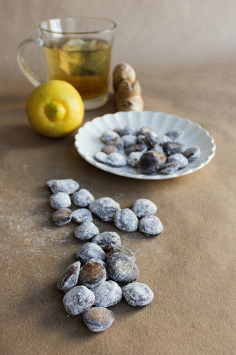 7. Once you’ve filled all the moulds, let drops cool for at least 5 minutes. Once cooled, toss them in icing sugar to coat them evenly so as to prevent them from sticking. Place candies in a sifter and shake to remove any excess icing sugar. Store throat drops in a glass jar in a cool dry place. Cough drops will keep well for at least one month.