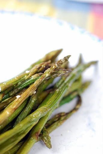 This is a quickie recipe for roasted asparagus that's really more of a technique. This works with both skinny asparagus and the thicker kinds. I prefer the former because I love how tender they get, but you might have your own preference.