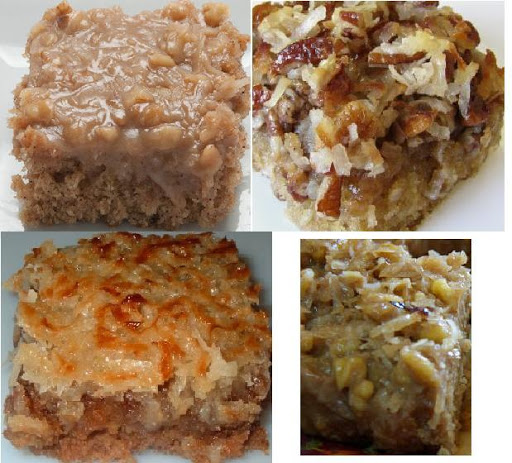 Mix together and spread mixture on cake just out of the oven; Put under broiler until coconut is brown. Watch very closely as it burns easily
