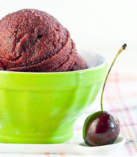 Transfer the cherry mixture to the bowl of an ice cream machine and churn according to the manufacturer’s instructions. When done, place in a freezer safe container and freeze until the sorbet has reached the desired consistency.