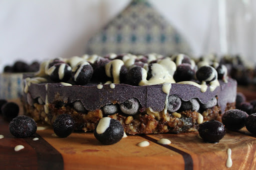 Holy walnuts, this is delicious. The filling is basically just an awesome blueberry-banana smoothie and the crust is walnuts and dates