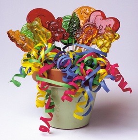 Have all ingredients and tools assembled and within easy reach of the stove. The use of metal spoons and measuring utensils is recommended. Line with foil and lightly spray cookie sheet/jelly roll pan*. If using molds, lightly spray cavities of clean, dry candy molds with cooking spray (we recommend PAM). Insert sucker sticks. (If using two-piece plastic or aluminum molds, insert sticks after candy has been poured into molds.) If using molds, you may also want to spray a piece of aluminum foil with cooking spray. If after pouring the candy into the molds you have excess candy, you can pour it onto the foil.