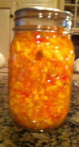 Add squash mixture to liquid and boil for 4 minutes. Put in sterile pint jars and process for 15 minutes in water bath.