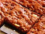 Stir together 1 cup of the flour, baking powder and salt. Add to cooled chocolate mixture. Toss the walnuts and 12 ounces of chocolate chips with 1/4 cup flour to coat. Then add to the chocolate batter. Pour into prepared pan.