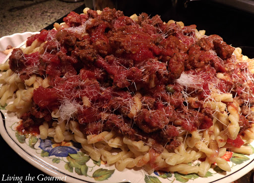 Sauté until the onion is softened. Add the tomatoes, wine and the seasonings and gently simmer on low, slightly covered for 25-30 minutes.