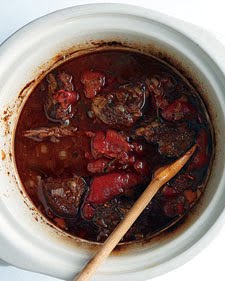 •Transfer vegetables and liquid to slow cooker and add tomatoes, breaking them up as you go. Add herb sprigs; season to taste with salt and pepper. Cover and cook on high until meat is fork-tender, 6 hours.