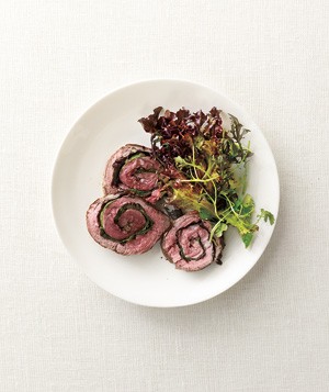 Spread the tapenade over the steak; top with the spinach. Roll up; tie with twine at 2-inch intervals. Season with ½ teaspoon salt and ¼ teaspoon pepper.