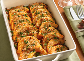Bake uncovered 30 to 40 minutes or until squash is tender when pierced with fork. Increase oven temperature to 425°F; bake 5 to 10 minutes longer or until lightly browned. Before serving, sprinkle parsley over top.