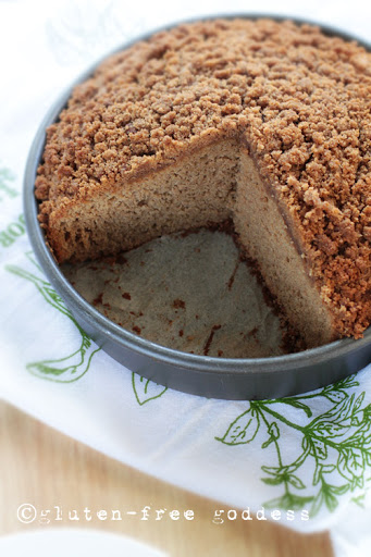 Preheat the oven to 350ºF. Line a 9-inch deep cake pan or baking dish with a piece of parchment paper. In a large mixing bowl, whisk to combine the dry ingredients: sorghum flour, potato starch, hazelnut flour, brown sugar, xanthan gum, sea salt, baking powder, baking soda, cinnamon, allspice, ginger, and nutmeg. Add in the eggs, oil, and vanilla extract. Beat to combine. Add in the applesauce and beat by hand to mix the batter. Scoop the batter into the prepared cake pan and smooth it out to the edges. Make the topping combining the brown sugar, sorghum flour, coconut oil, and cinnamon. Mix with a fork until sandy textured. Spread the crumb topping on the batter. Lightly press down. Bake in the center of the oven for 40 minutes, then loosely tent a piece of foil over the top to prevent the topping from over-browning. Bake for 10 to 15 minutes more, until the center of the cake is firm and a wooden pick inserted in the middle emerges clean. Cool the cake on a wire rack.