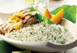 Grilled Mahi Mahi with a tangy salsa marinade … cilantro, ginger and mango. Served over coconut and ginger flavored Thai Jasmine rice.