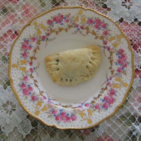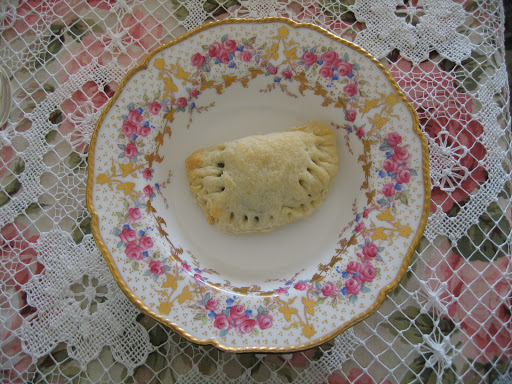 Pat dough into 2 1/2" circles, fill with a tiny bit of mushroom-thyme mix. Moisten edges with water, fold in half, and press edges together.
