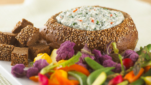 - 1 large round sour dough or pumpernickel bread loaf, optional