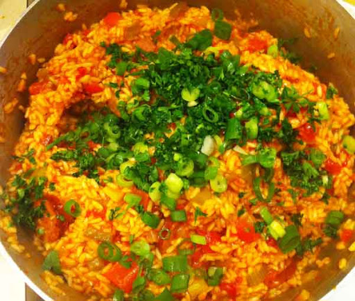 Add green onions and parsley, and stir. Cover and cook another 15-20 minutes, stirring about every five minutes. Continue to cook until the base has completely absorbed into the rice. (This may be another 20 minutes or so depending on the pot you're using.)
