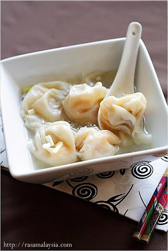 2. Lay out wonton wrapers, spoon pork mix in center of each wrapper, moisten eadges, fold each in half to form a traingle, press to seal.