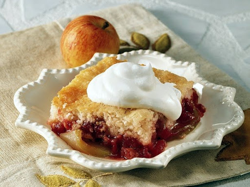2 In medium bowl, stir Bisquick mix, sugar and milk until smooth. Pour batter evenly over butter in pan. In small bowl, mix cranberry sauce and applesauce; spoon evenly over batter. Place apple slices on sauce mixture.