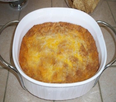 Mix all ingredients together but save some cheese for top. Place in baking dish and heat in 350 degree oven till hot and bubbly (20 min)