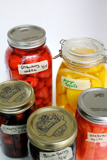 One caveat: This process requires a little patience. I generally start one mason jar of infused spirits per week throughout the summer. Depending on the type and ripeness of the fruit, infusions can take 2 to 3 weeks, so plan accordingly if you're making it for a party (or use a fresh batch as an excuse to party). A pretty jar of rosy strawberry vodka is the perfect hostess gift, and it's a lot more appealing than neon-green Margarita mix.