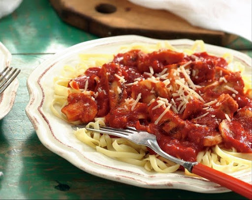 Add something hearty to your family's Italian dinner! Serve pasta with added chicken and mushrooms - a dish that's ready in 20 minutes!
