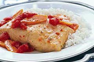 SERVE fish and carrots over rice; top with tomato mixture.