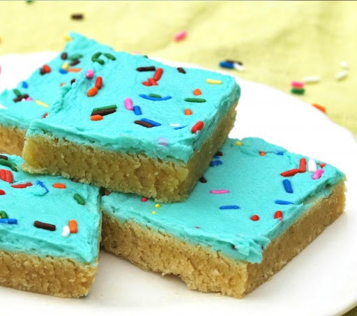 Spread the mixture evenly (you will need to use your hands) onto a greased 12″x18″ baking sheet. Bake at 375F for 10-15 minutes or until light brown. Do not over bake! Frost when cool and cut into bars.