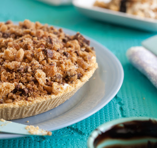 Meanwhile, defrost 2 tubs of ice cream, halfway (they should not be fully melted, just soft). Scoop ice cream into a bowl and break up cookie dough into the ice cream. Mix gently and pour into graham cracker crusts. Freeze.