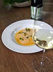 4. Gently warm the bowls with the scallops in the oven. While the scallops are heating, rewarm the curry sauce.