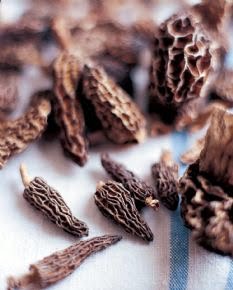- 1 ounce dried morels, soaked for 30 minutes in 3 cups very hot water (.25 oz - 7 grams and 1 Cup hot water))