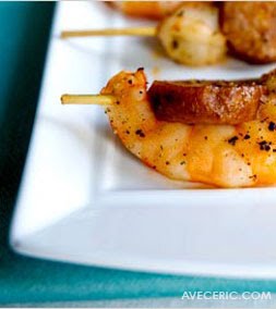 3. Wrap the shrimp around the chorizo and secure with a skewer.