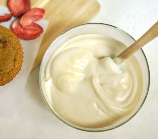Place all ingredients into small bowl and whisk together until completely smooth. Use as a topping for muffins, brownies, cinnamon buns, etc. (anywhere you would use a cream cheese frosting).