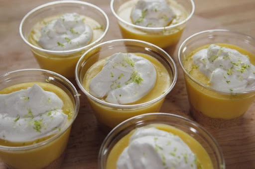To assemble, layer the crumb mixture into the bottom of a serving cup, followed by the lime curd. Top with the whipped cream mixture and garnish with lime zest.