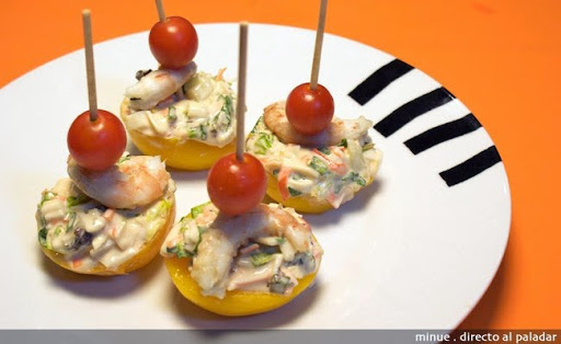 MONTADITO DE MELOCOTON Y ENSALADA DE MARISCOS