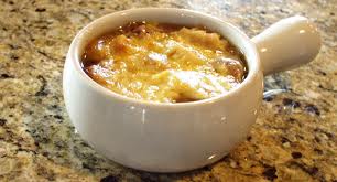 Stir parmesan cheese into soup, then ladle soup into individual ovenproof crocks, or pour it into a large ovenproof saucepan or soup tureen. Add toasted french bread slices to soup and top with slices of swiss cheese. Place under broiler or bake in a 400 oven for 5-8 minutes, until cheese had just melted and bubbled.