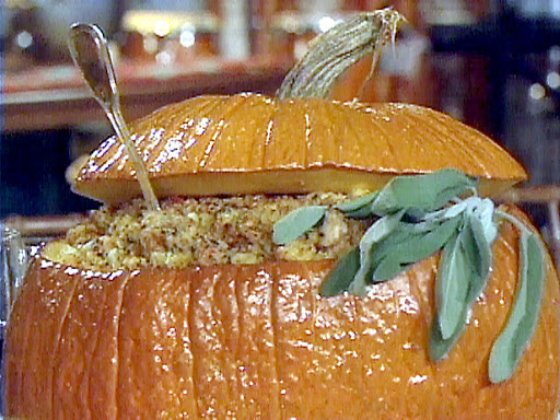 Pumpkin with Cornbread, Apples and Turkey Sausage with Sauvignon Blanc