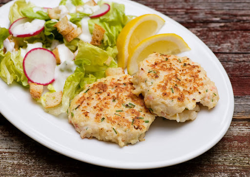 Combine all ingredients except oil and lemon together and form into 8 patties. They will be soft and loose - don't worry! Chill for about 30 minutes in the fridge.