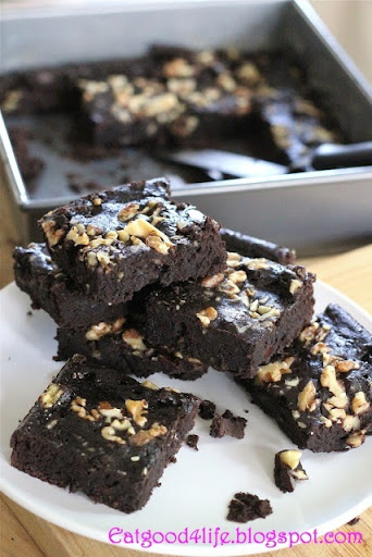 Place all the ingredients except chocolate chips and walnuts in a food processor or blender and pulse thoroughly until smooth and well combined.