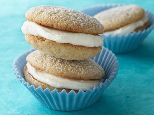 6 Sprinkle tops of sandwich cookies with powdered sugar. Store between sheets of waxed paper in tightly covered container in refrigerator.