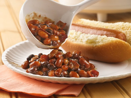 In 3 1/2- to 4-quart slow cooker, mix bacon, onion and remaining ingredients, including reserved liquid. Cover; cook on Low heat setting 3 to 4 hours.