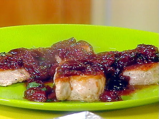 Pork Chops with Brandied Cherry Sauce and Zucchini with Walnuts