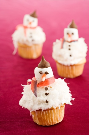 Put an extra cute touch on your holiday sweets and treats this year with these snowman cupcakes!