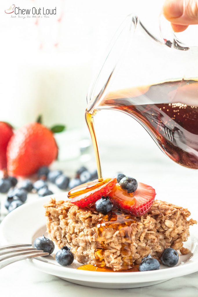 This recipe as written results in a tender, deliciously moist baked oatmeal that cuts easily into squares. If you prefer a drier, crispier, crumbly texture, use 1/4 cup less milk and bake a little longer.