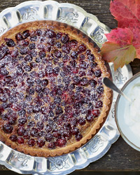 Bake the tart in the lower third of the oven until a skewer inserted in the center comes out clean, 16 to 18 minutes. Transfer the tart in the pan to a rack to cool completely, at least 2 hours. Dust the tart with confectioners’ sugar. Cut the tart into wedges and serve with whipped cream.