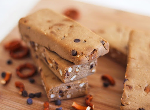 Sadly, the pretzels absorb some of the moisture in the protein bars so they weren't crunchy like I expected. However, they provided an awesome (and addicting) salty flavor, perfect with peanut butter and chocolate!