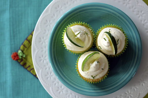 To make the frosting, whip the butter on medium-high speed of an electric mixer using the whisk attachment for 5 minutes. Reduce the speed to medium-low, and gradually add the powdered sugar, mixing and scraping the sides of the bowl until all is incorporated. Give it a mix on medium speed for about 30 seconds. Add the lime juice, tequila and salt mix on medium-high speed until incorporated and fluffy. If the frosting appears a bit too soft, add some additional sugar, one spoonful at a time until desired consistency is reached. Frost cupcakes and garnish, if desired, with lime zest, an additional sprinkling of salt and a lime wedge.