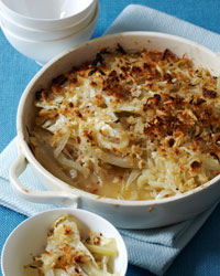 Preheat the broiler. Uncover the fennel and broil for 2 minutes, rotating the dish, until evenly browned. Let the fennel stand for 5 minutes before serving.
