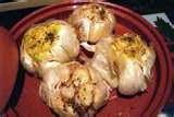 Cover and place in oven. Bake at 300 deg. for one hour. Remove cover and bake for an additional 20 minutes or until garlic is tender and husks are golden brown. Baste occasionally with olive oil.